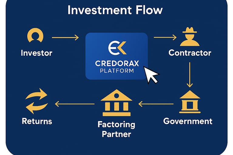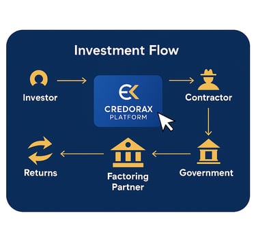 CredoraX is a digital platform that bridges private credit and blockchain technology.We connect investors with verified government and GLC-linked projects, backed by licensed factoring partners and secured by smart contracts.